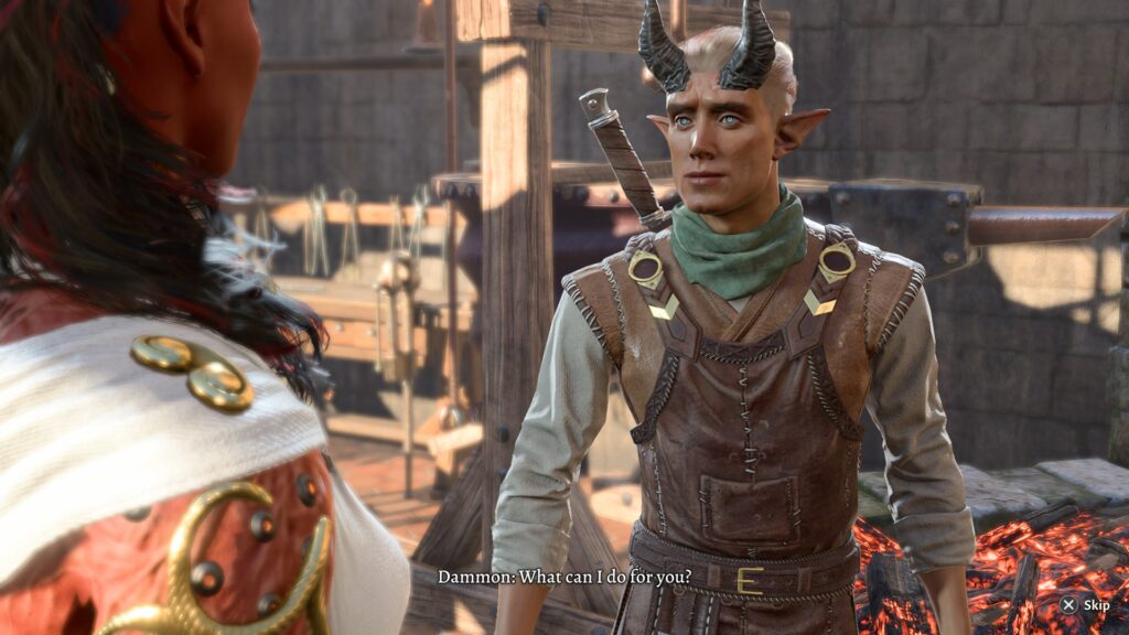 Since we are talking about romances that can’t happen, I really want there to be an alternate universe where Karlach can romance Dammon, the tiefling smith that helps her with the two “upgrades” to her heart. He’s an absolute sweetheart, he geeks out over the infernal technology, and he comes up with the solution that allows her to touch people for the first time in ten years. Come on. The fanfiction nearly writes itself!