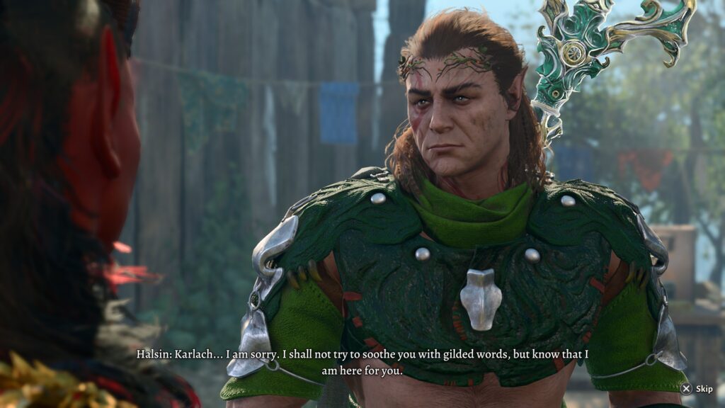 Which means that this is the first playthrough so far that I have not romanced Halsin. Despite my efforts to not flirt with him (I tried, I swear!), he did confess his feelings, and I had to gently shut him down. He takes it very graciously, in fact, much more so than I did.
