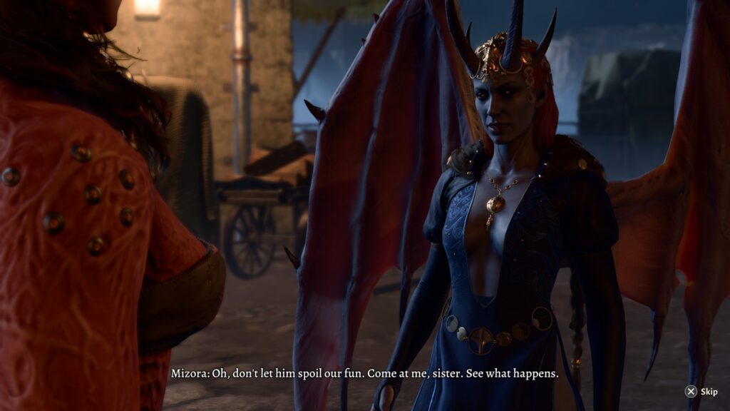 There are also some interesting interactions with the other characters that you don’t see in banter otherwise. Normally, your companions only talk to each other when the party is out in the world bantering down the street, but there isn’t a way to have them talk to each other in camp, where we usually have downtime to talk to each companion. In my Tav games, everyone has a “poor Karlach” moment that they told me, but in this playthrough, it was quite nice to hear them have a longer interaction with her, expressing their condolences with some saying quite lovely things that I wouldn’t have heard otherwise.