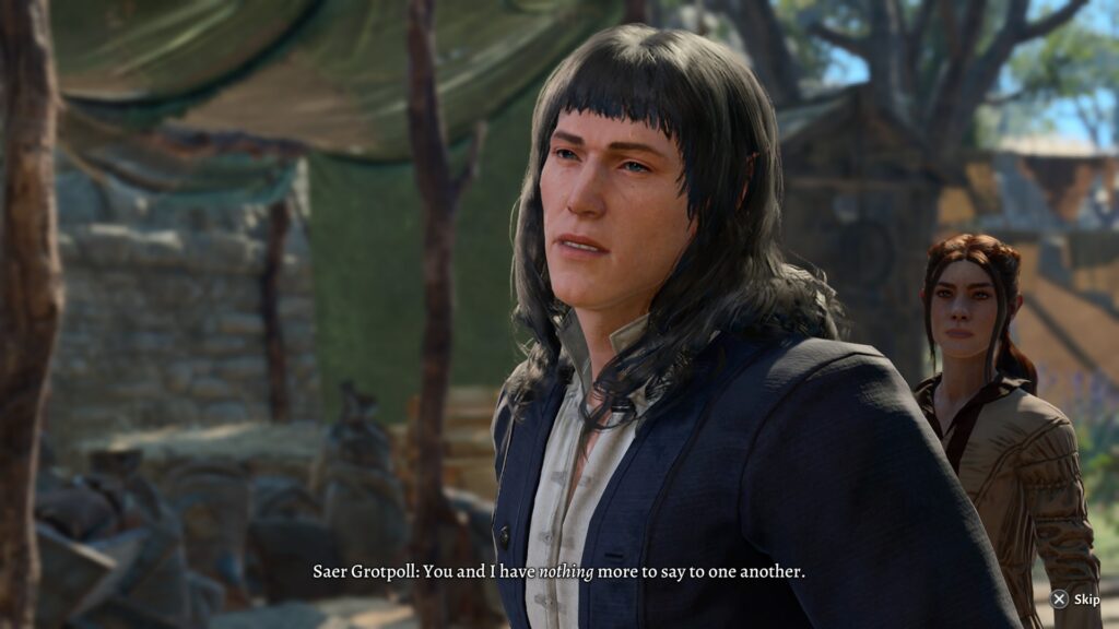 Talking to NPCs also isn’t any different. I guess I was hoping that there’d be more options or they might have different dialogue than we would have with any other Tav, but they did not.