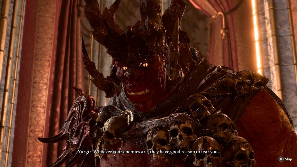 Playthrough 4 was my first Origin playthrough, meaning that you play as one of the Companion characters in the previous games. Karlach is by far my favorite of the companions, so it was not difficult to figure out who I’d play first. I didn’t really know how an origin playthrough works (do you still voice all your lines with everyone? Do you get pauses for additional internal monologue? Do you become voiceless like Link in the Zelda games?)