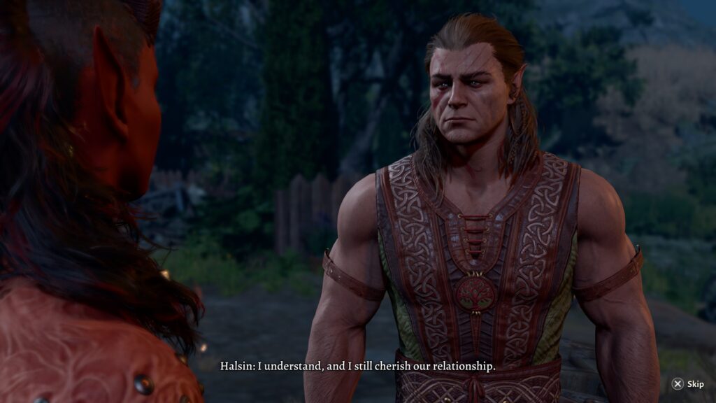 Which means that this is the first playthrough so far that I have not romanced Halsin. Despite my efforts to not flirt with him (I tried, I swear!), he did confess his feelings, and I had to gently shut him down. He takes it very graciously, in fact, much more so than I did.