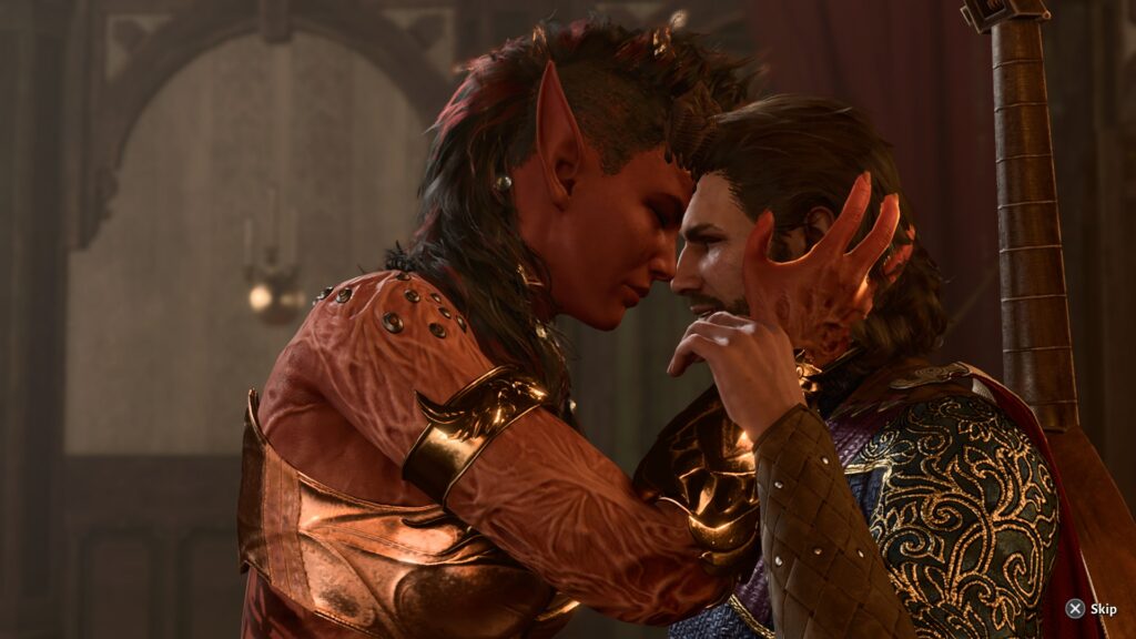 My Karlach made several choices to support him in the path he was growing on, maybe to the point that it wasn’t quite canon-accurate. Gale is quick to declare his interest — he might actually be the easiest character to romance. He’s sweet and articulate, sometimes a little overly so. He has a flying cat and a huge home library, which are definite selling points. I even got sexy scenes that Bill had never gotten. Things seemed like they were going well.