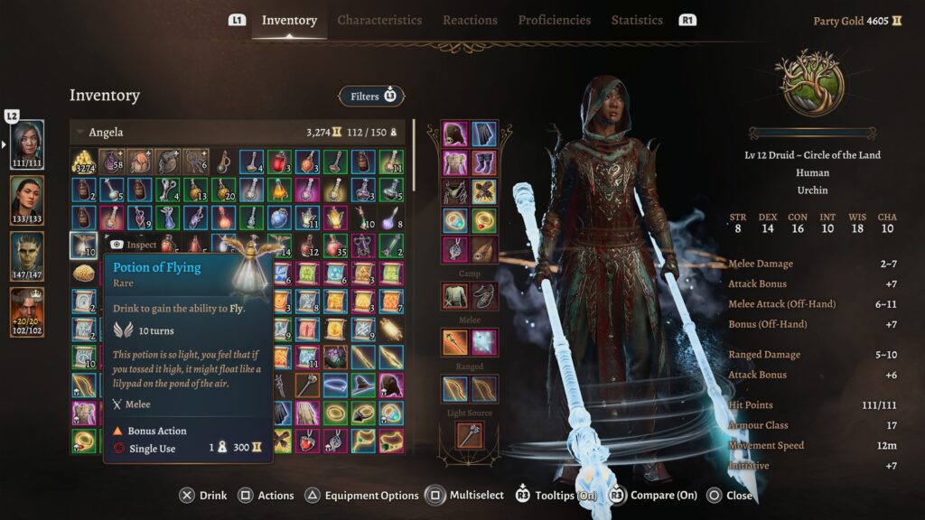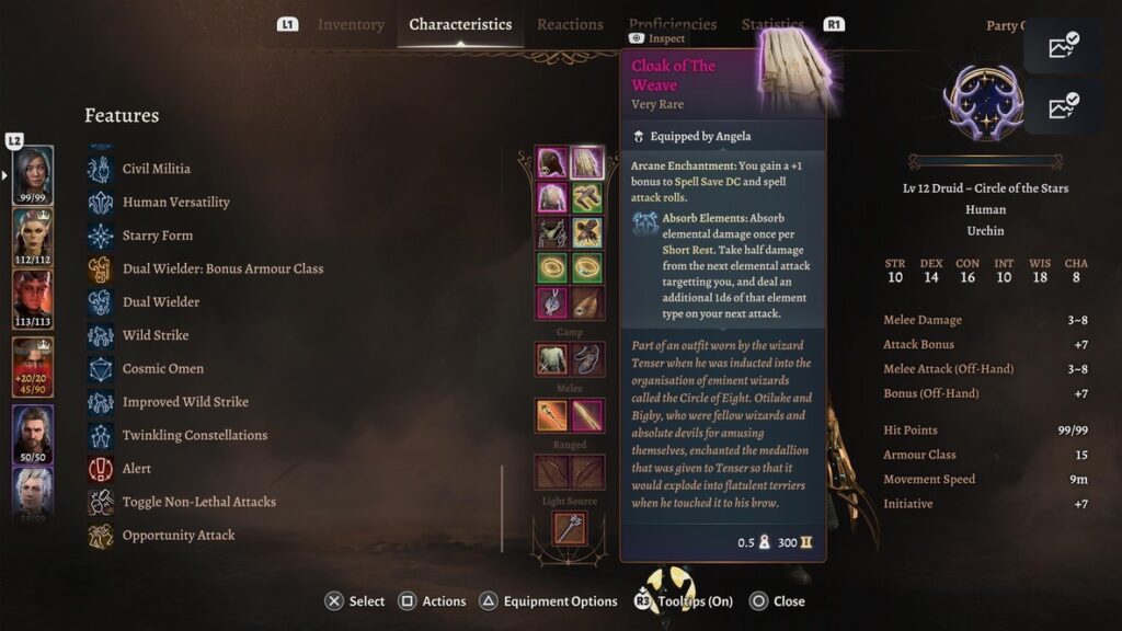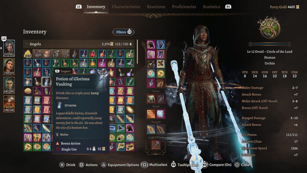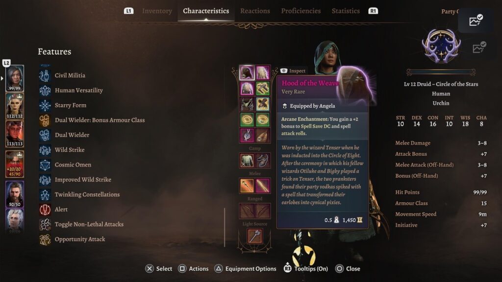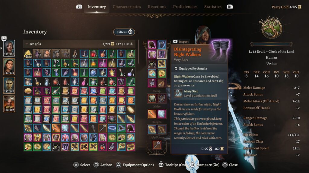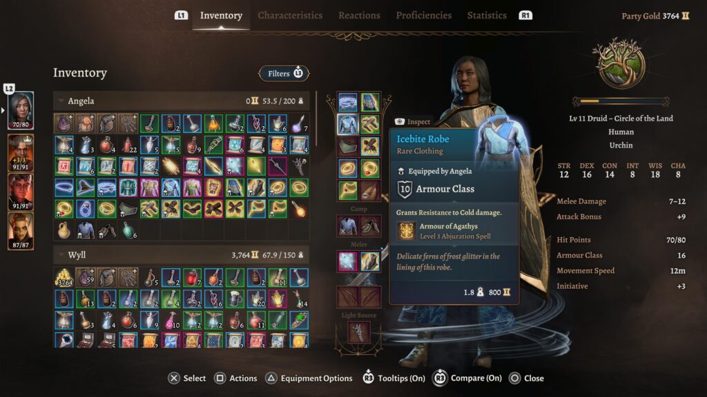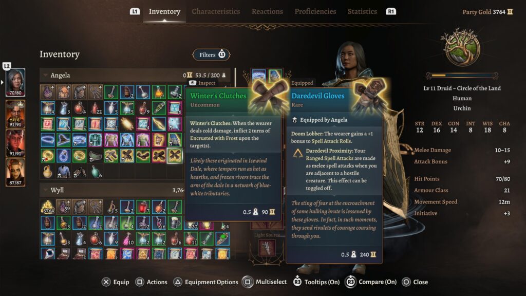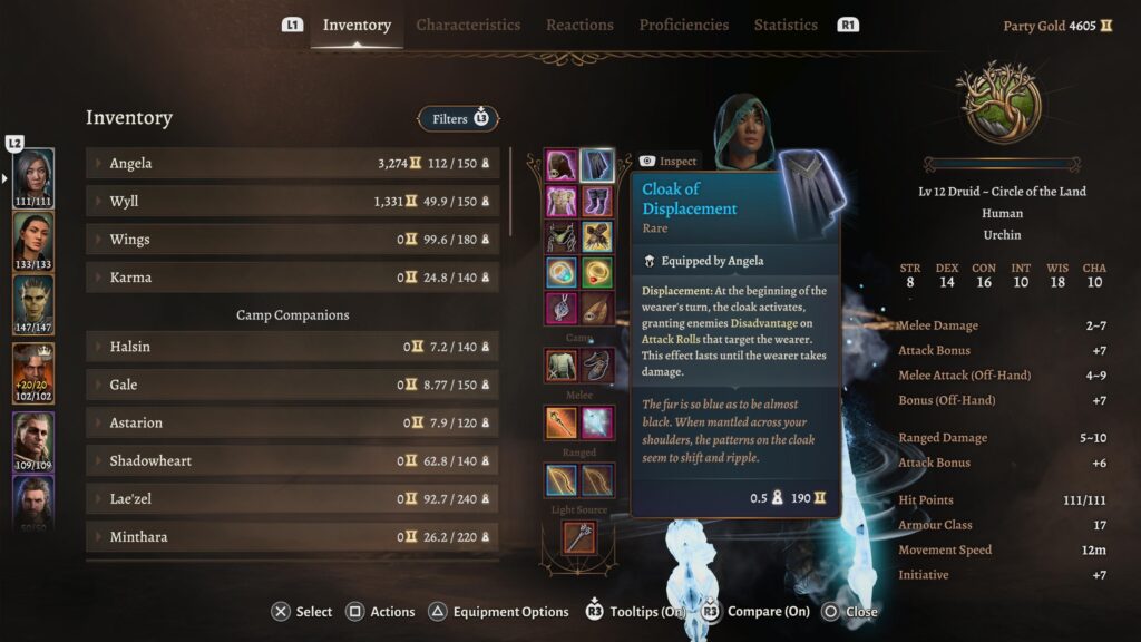 I can’t say how much of Arctic Druid Angela’s success was due to being a Druid with Sleight of Hand and Stealth Proficiency. Probably not much, since in my playthrough 8 it was Wyll who became the party’s “Rogue”.