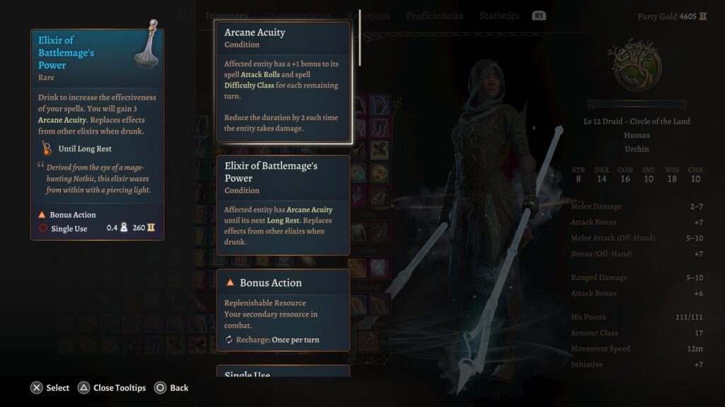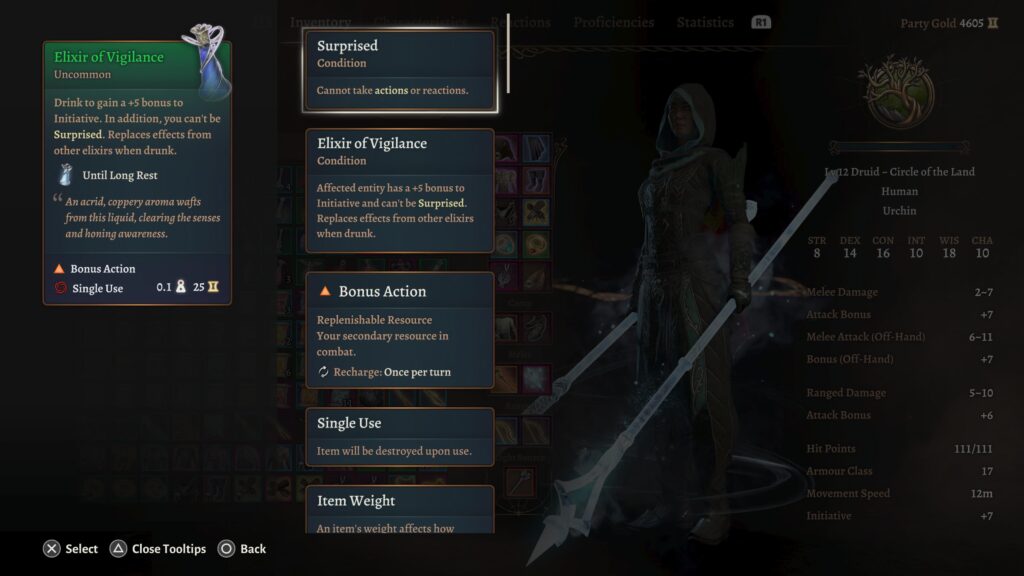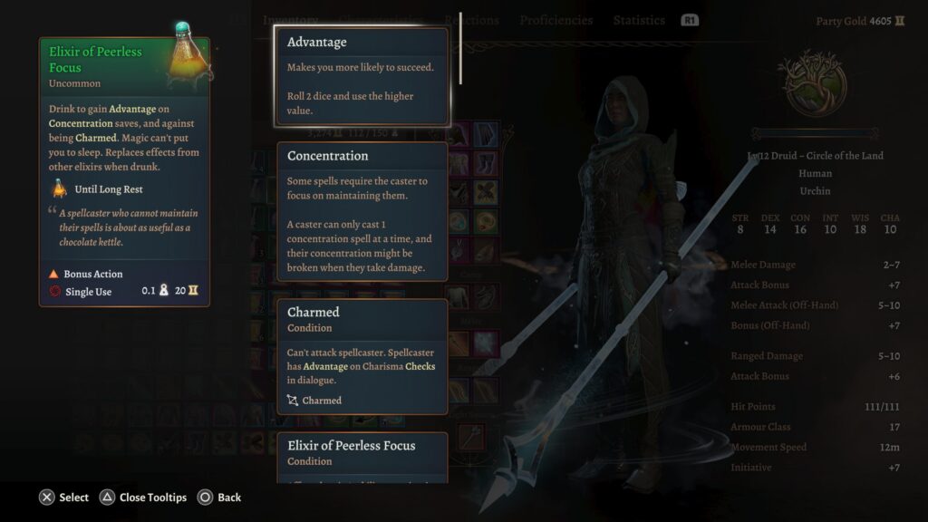 Similarly, Elixir of Peerless Focus gives Advantage on Constitution Saving Throws, so it’s a lesser version of the War Caster Feat. It might be used if she doesn’t have the Armor of Landfall yet.