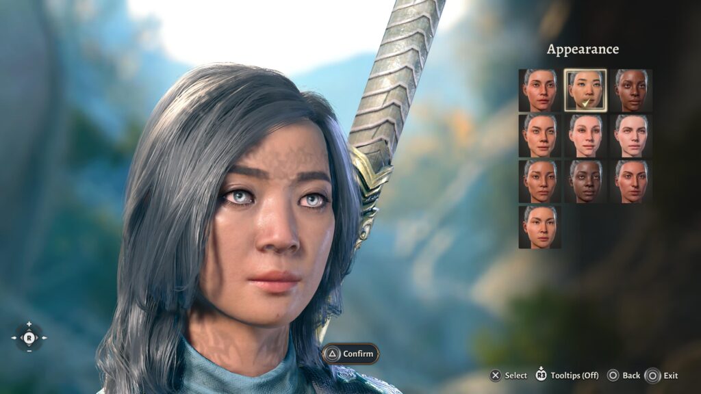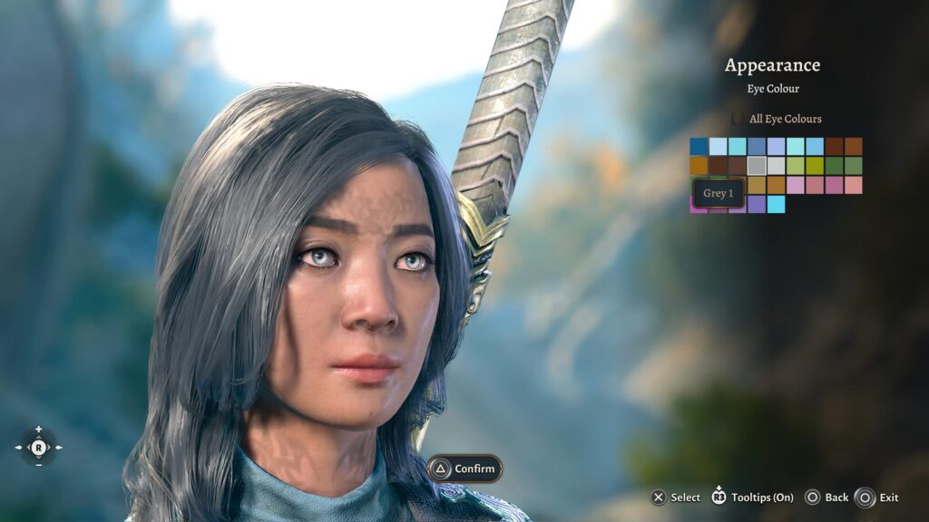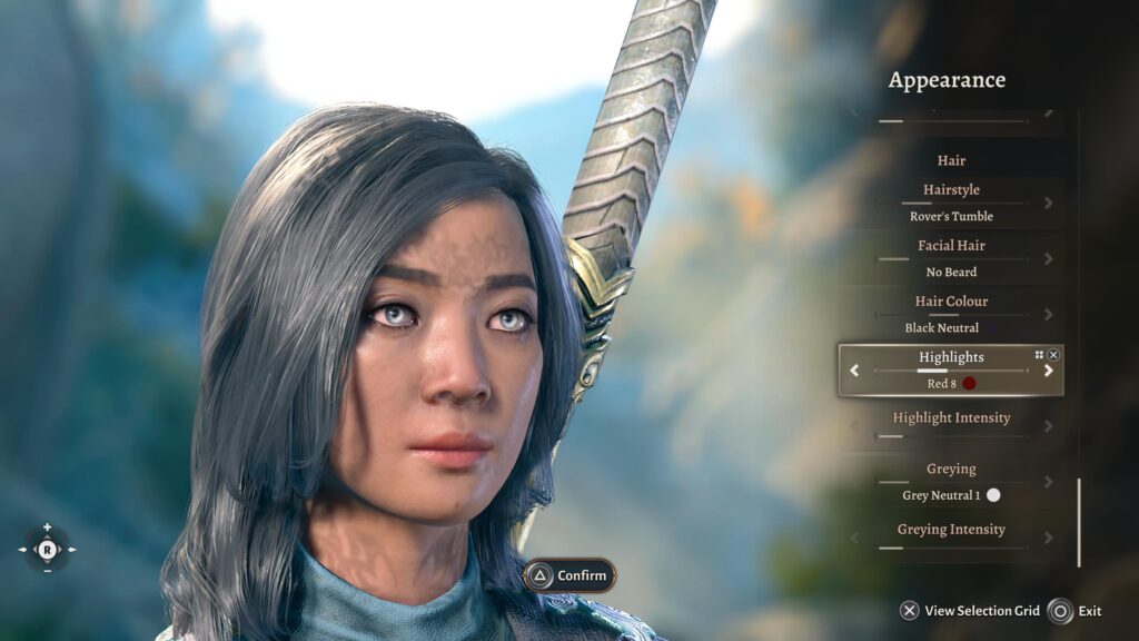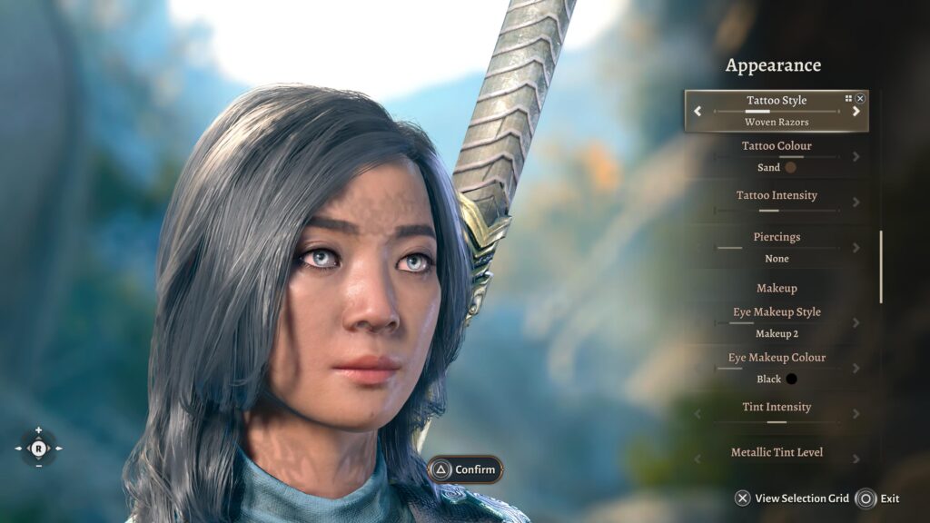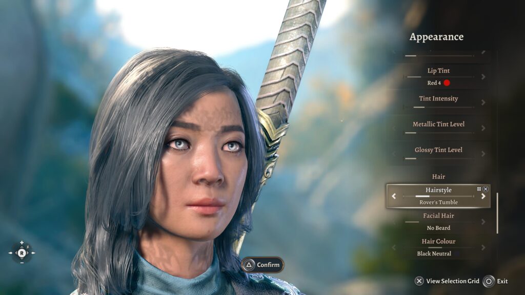 If you’re having trouble matching the names like “Woven Razors”, “Rover’s Tumble”, “Sand”, “Black Neutral” to the menus available in BG3‘s appearance customization, click on “View Selection Grid”, then turn on Tooltips. For example:
