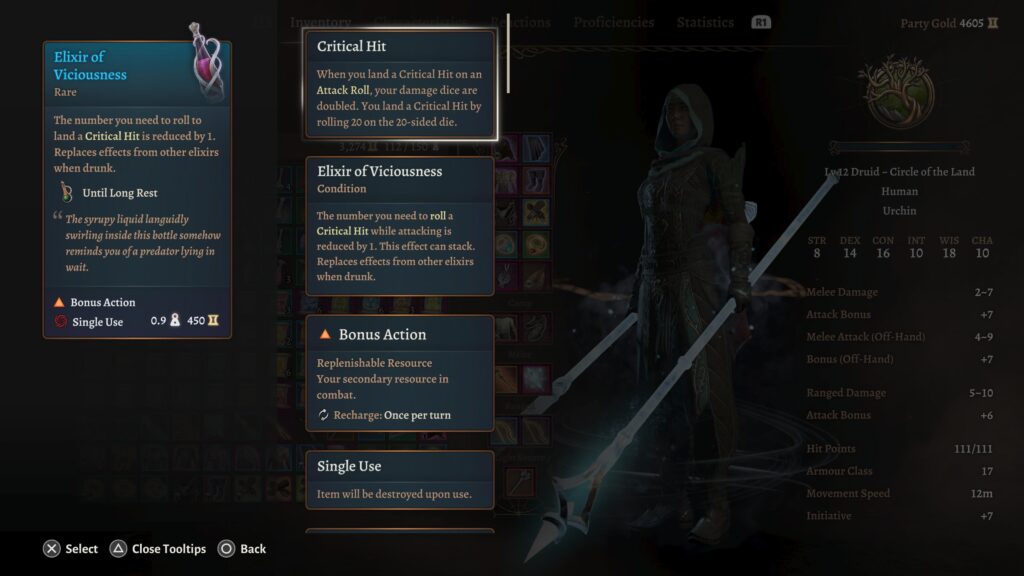 If she’s in a party and the abilities of her companions make some of the above unnecessary, there’s always that old standby Elixir of Viciousness. (You may have to pry it away from Astarion, though.)