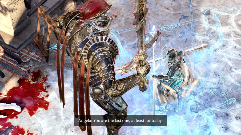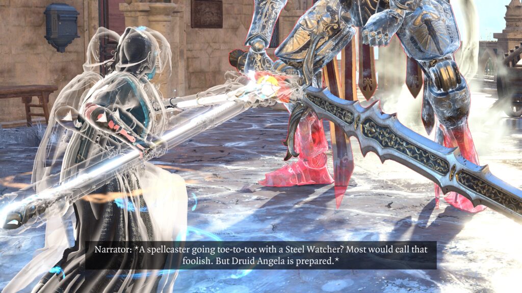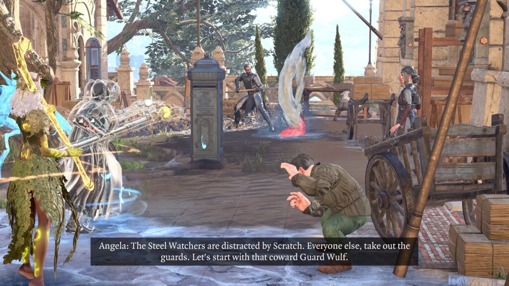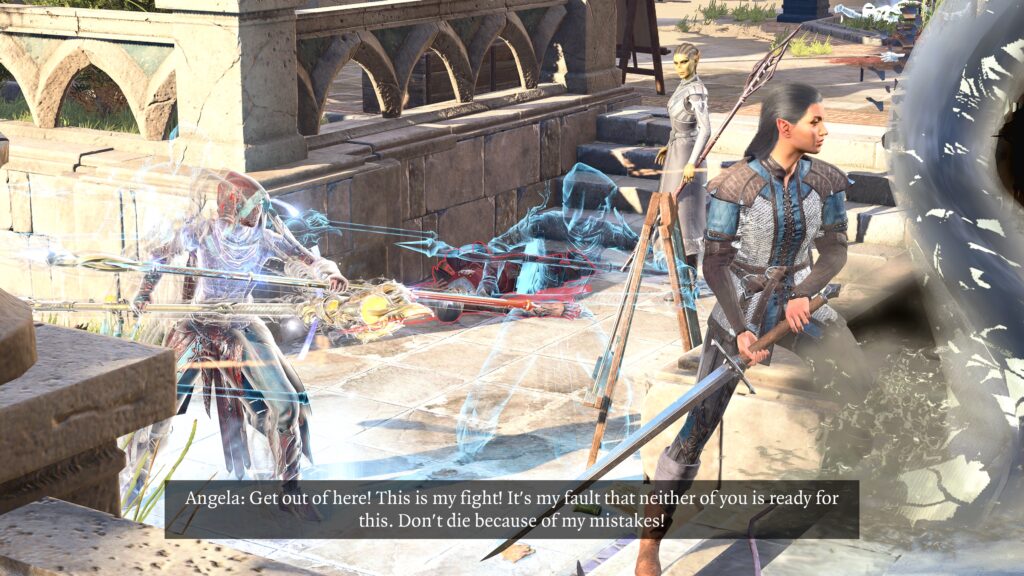 Druid Angela was out of combat range when this second fight started. She rushed in with the summons who’d survived the first fight.