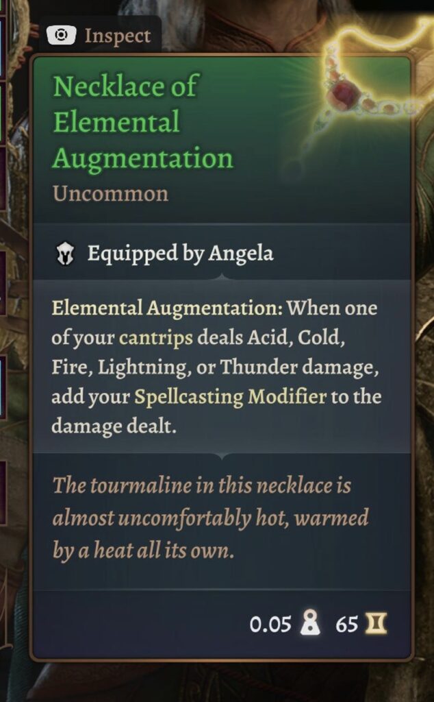 - However, it gives up the Necklace of Elemental Augmentation, which means her Ray of Frost will do less damage.