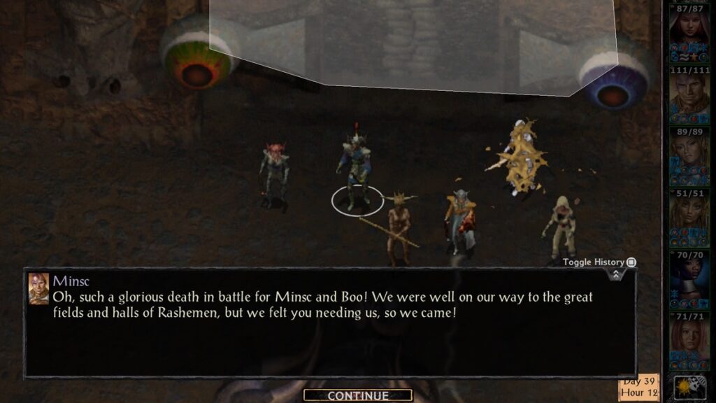 Bizarrely, it explains why Jaheira and Minsc did not recognize her 200 years later: Every time it’s a different realm, another evil that must be fought.