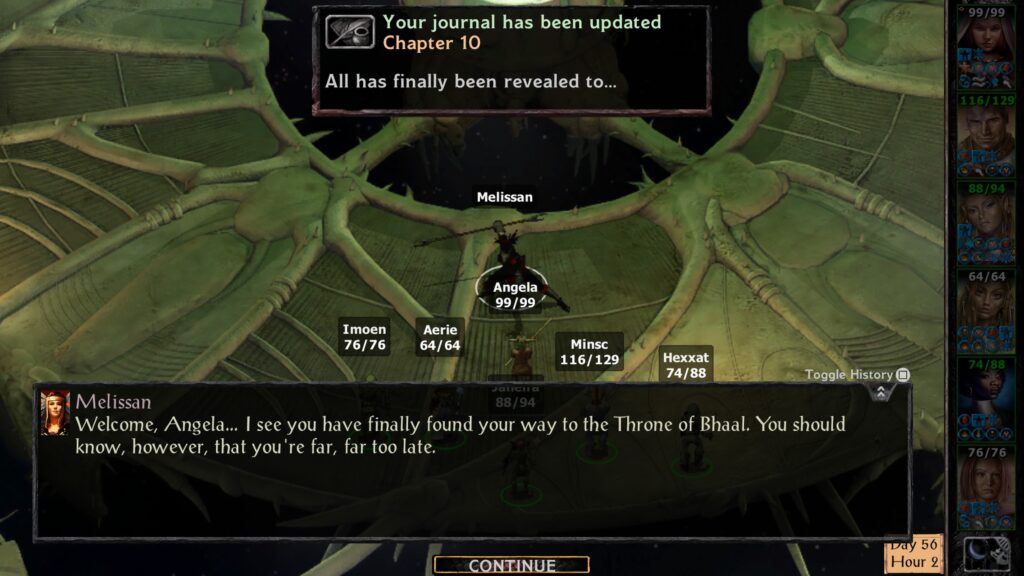 I’m sure you’ve already guessed who the final Bhaalspawn is: you. That is, it’s Garion’s Ward, the character you play in the Bhaalspawn Saga. In my case, that’s Druid Angela.