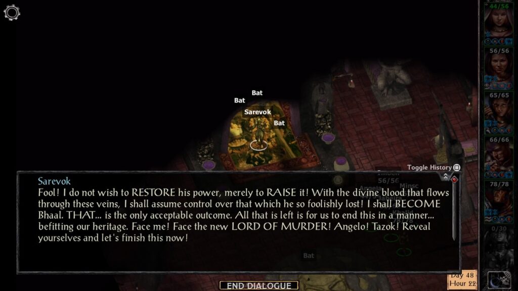 It’s possible, depending on your choices in BG3, to spend some time conversing about the past with those who accompany Sarevok. I’ve done it before, but didn’t appreciate the context of what they said. Now I do. I look forward to speaking with them again a future playthrough. I’ll have a better understanding of the events they’re talking about.