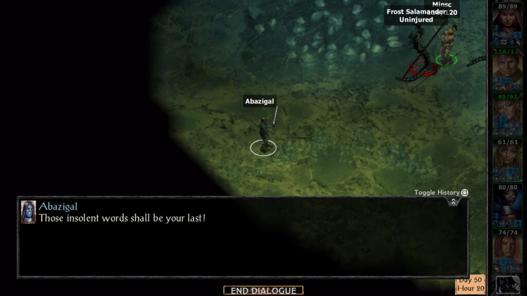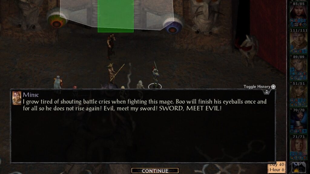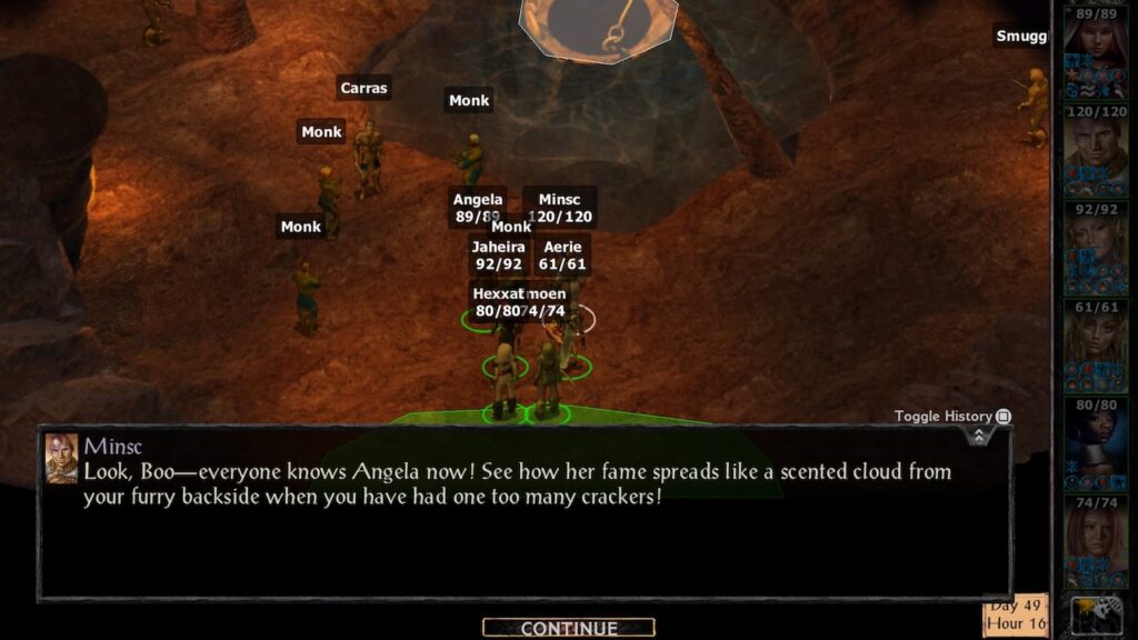 For example, if you put healing potions into Minsc’s “Quick Items” slot, he’ll consume them automatically. However, he’ll never automatically use Boo in combat, even though Boo is right there. You have to pause combat and select Boo yourself. With that said, I appreciated Story mode. I played these games for the story and the lore. To that end, Story mode fitted my needs perfectly. I wish more games were willing to do this.