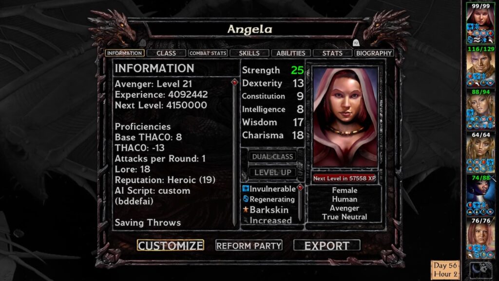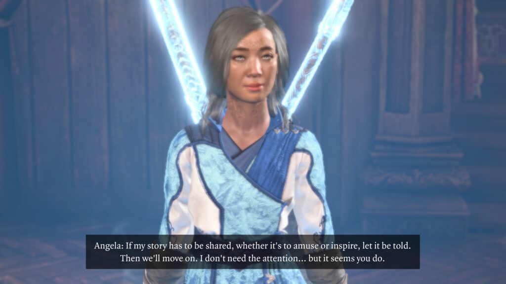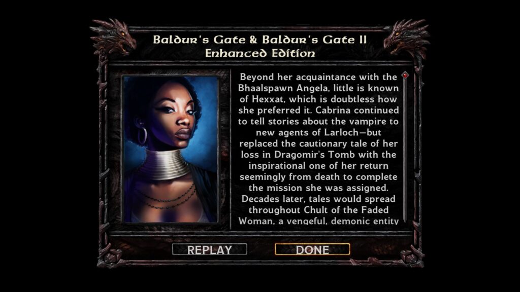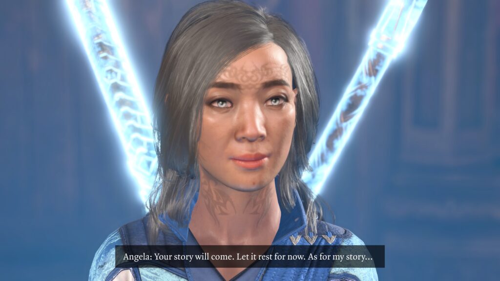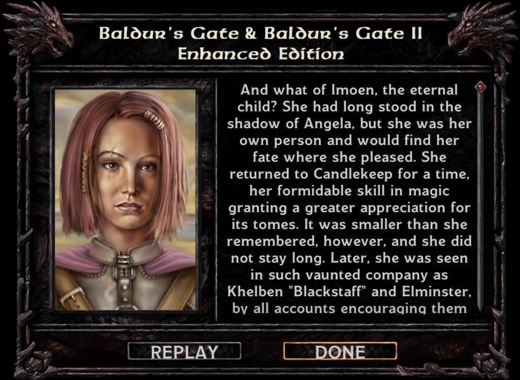 Perhaps for them Gorion’s Ward was Abdel Adrian, or another. For Druid Angela, the pasts don’t matter. The fight against Evil is not about remembering her name, but what she stands for.