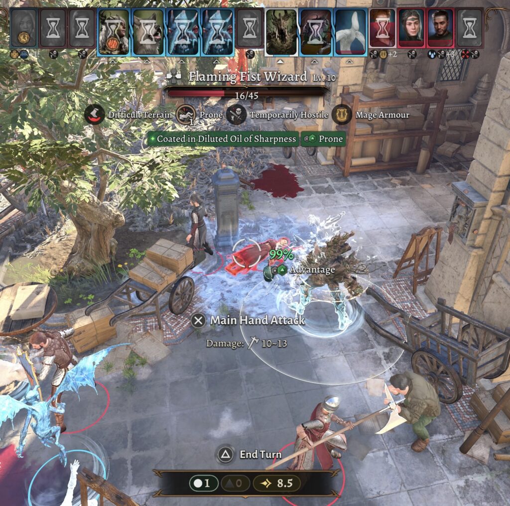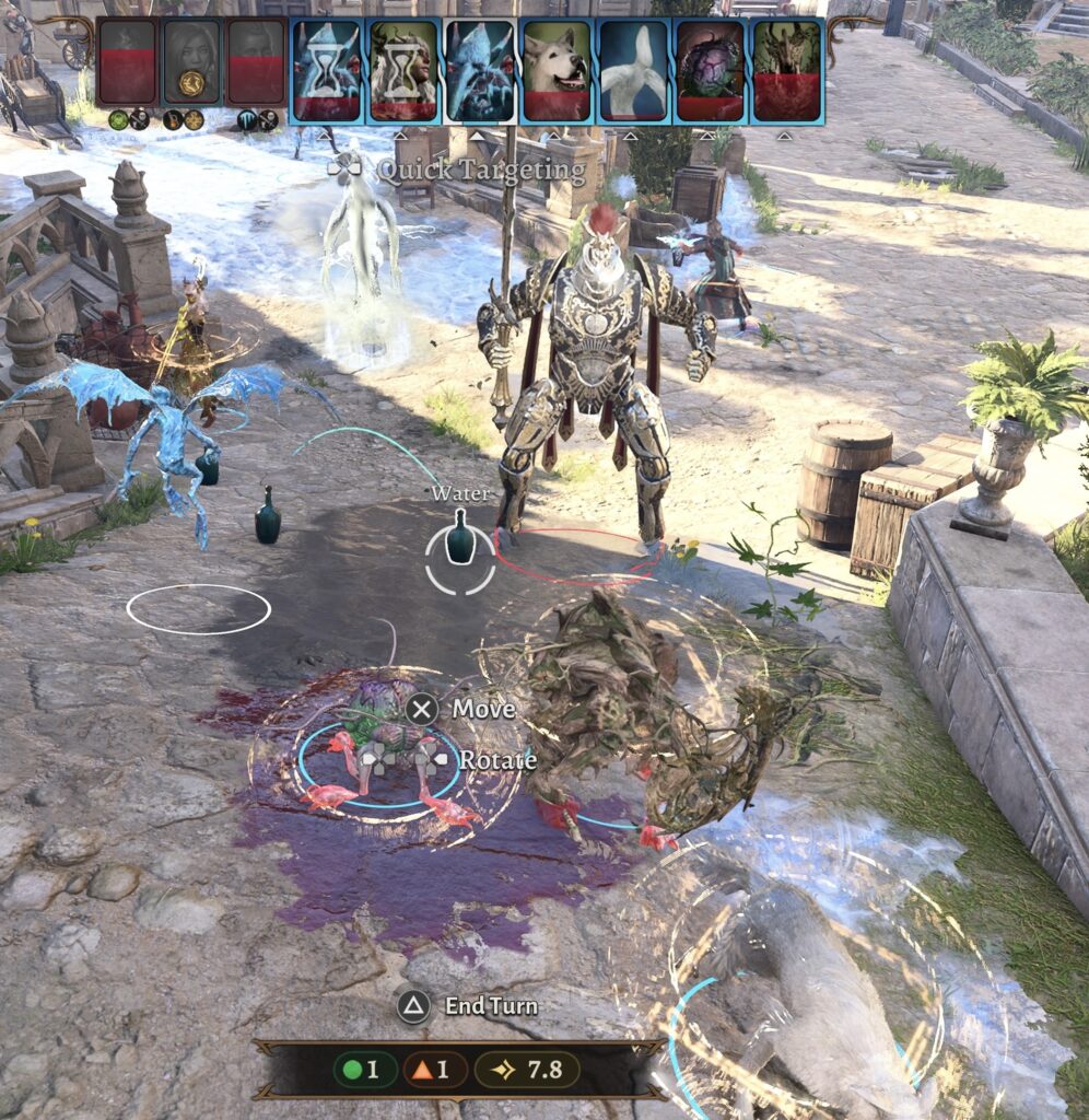 Didn’t it take a long time to set this all up? It did. But as I know from expert videos like this one, long set-ups before tricky combats are not unusual at high BG3 difficulty levels. Since my long-term goal is to get Druid Angela in shape to solo Tactician difficulty, this sort of set-up is likely to become common during that playthrough.