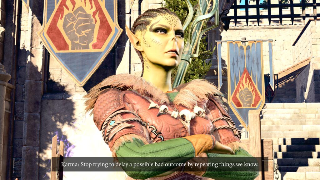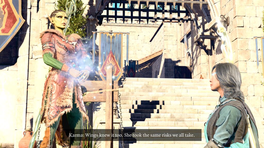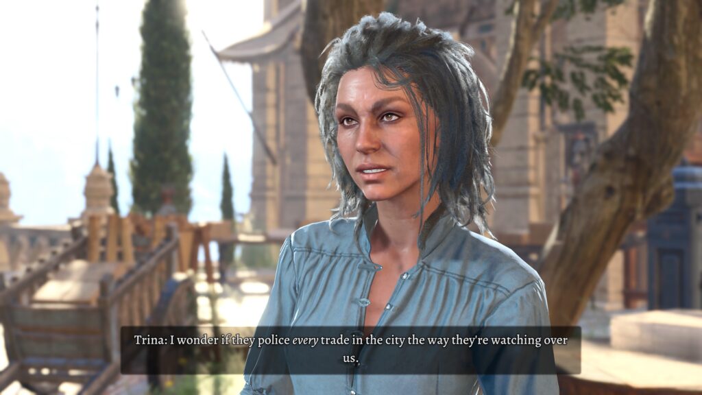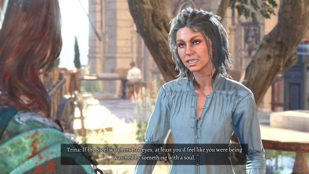 Trina was not particularly grateful. She’s caught up in concerns about the Steel Watchers, not acknowledging (as we learned in a previous story) her participation in Gortash’s plans.