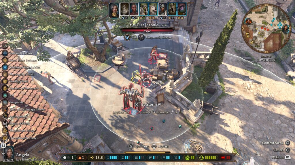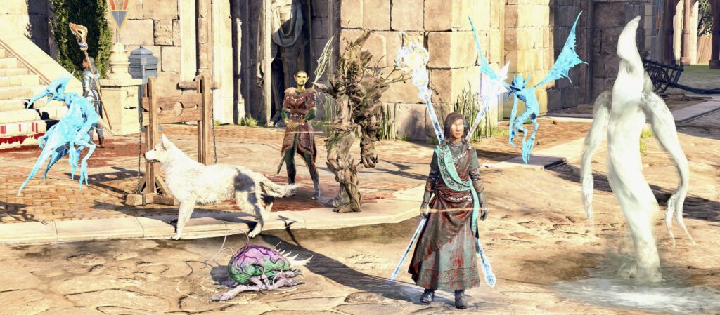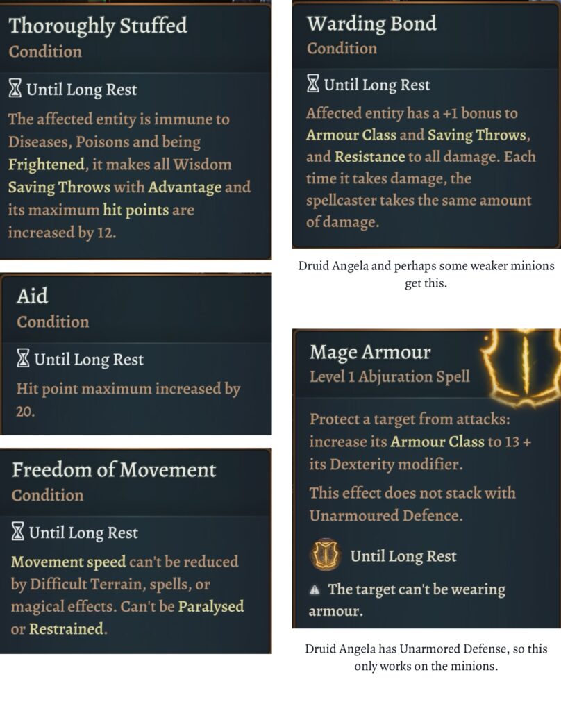Also, in a real playthrough, I wouldn’t be restarting and re-buffing for the same combat repeatedly. The buffed minions would accompany Druid Angela from battle to battle. Hopefully they wouldn’t need to be re-summoned and restocked each time.