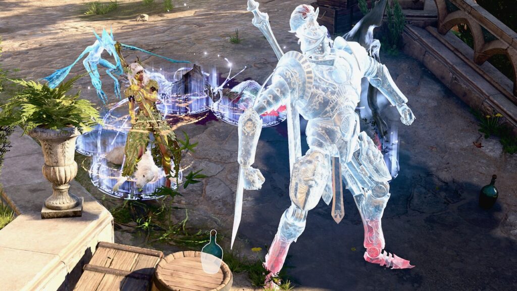 Eva: “Hey, Aegean, want to freeze another guard?” Aegean: “Sure! It’s easy because Druid Angela has dropped water bottles everywhere she goes.”