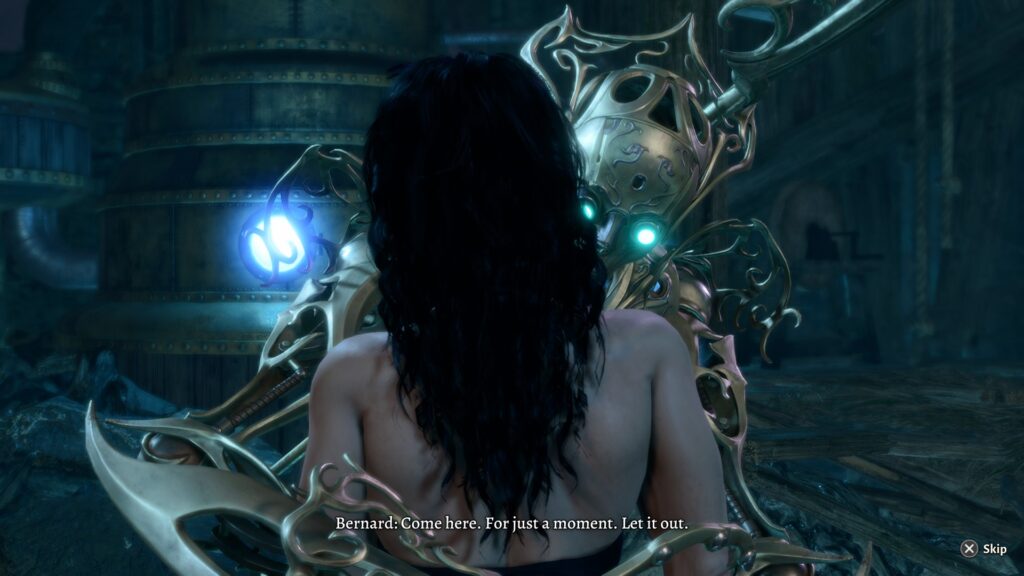 If you try to ask him any questions, he has no response. Bernard can only do what he has been programmed to do. Which makes it incredibly dark that one of those poem lines actually elicits Bernard and the other automatons to attack. There is no way to calm them down afterward. They fight to the death. Given how depressed Lenore was, and how she speaks of “I don’t know how much longer I can take this”, it’s pretty safe to assume that she designed a literal kill-switch, a sort of programmable suicide.