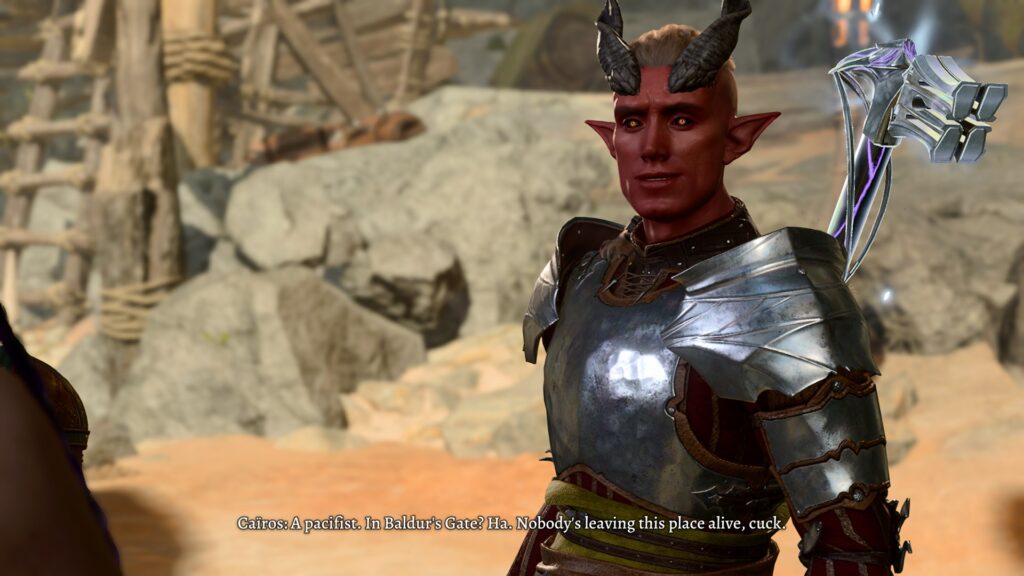 One of the other things I managed to do this game was to save the cluster of hostages in Act 3 that I’d let die for the past three playthroughs. Oleandra was evil and wanted them dead, Karlach made a separate plot decision that made it impossible to save them (without meta-gaming), and Astarion couldn’t be arsed to save them. So it was one of my goals this game to actually do it. It also worked with the non-lethal strategy.