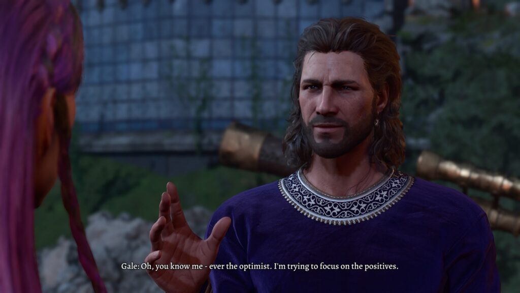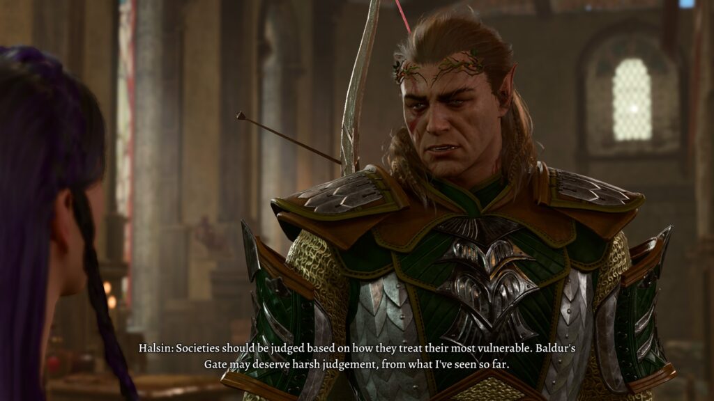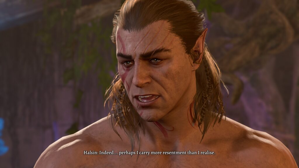 Since I knew from playthrough 1/14 that Karlach would be okay with it, I also romanced Halsin, making this the first time in three playthroughs that I was able to. Persephone’s rose-colored glasses tended to work well for trying to cheer up Halsin, even though he is correct on some of his observations of the city life.
