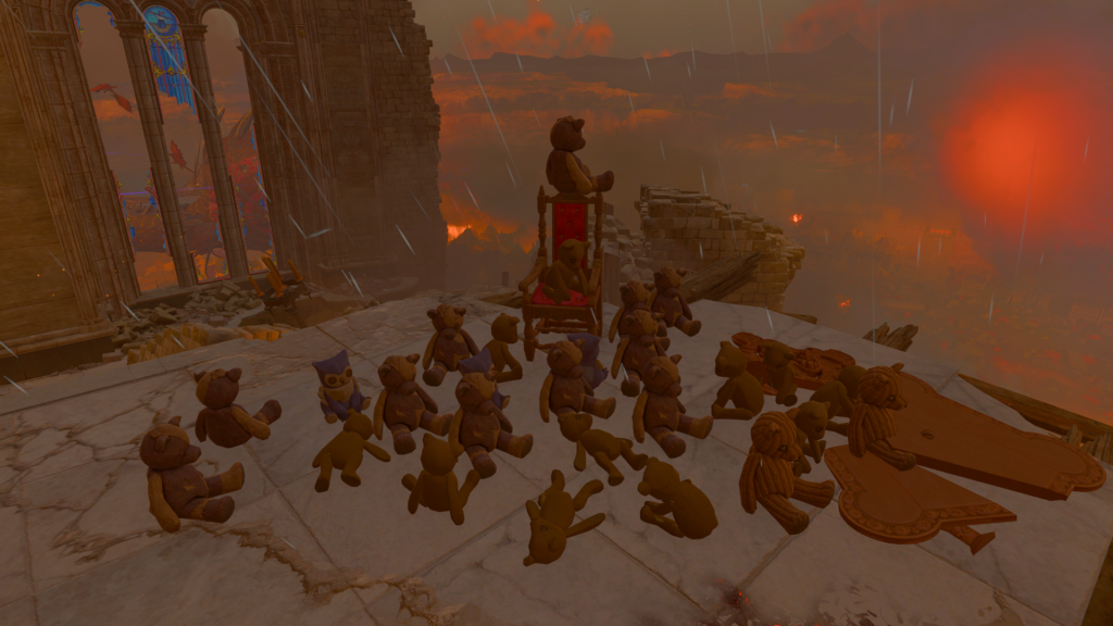 I also had her collect stuffed animals in the game, which again made sense for someone struggling to overcompensate against her dark urges. I found significantly more this time around! The final count was at 24 stuffed bears and 3 owlbear toys.