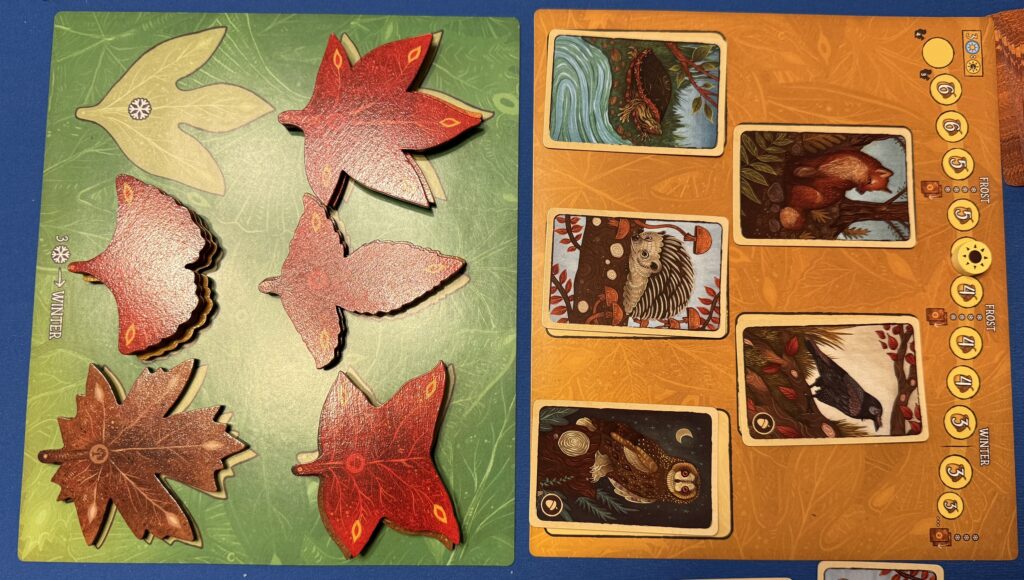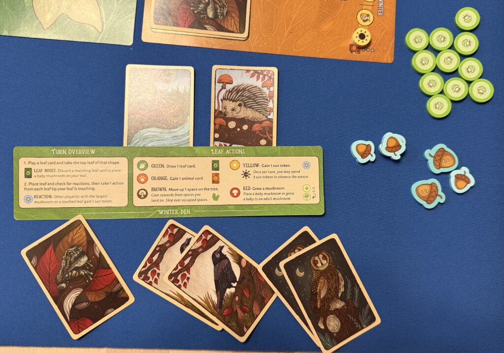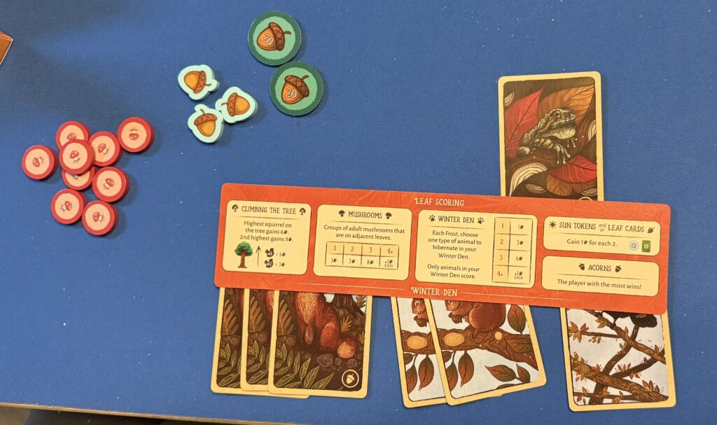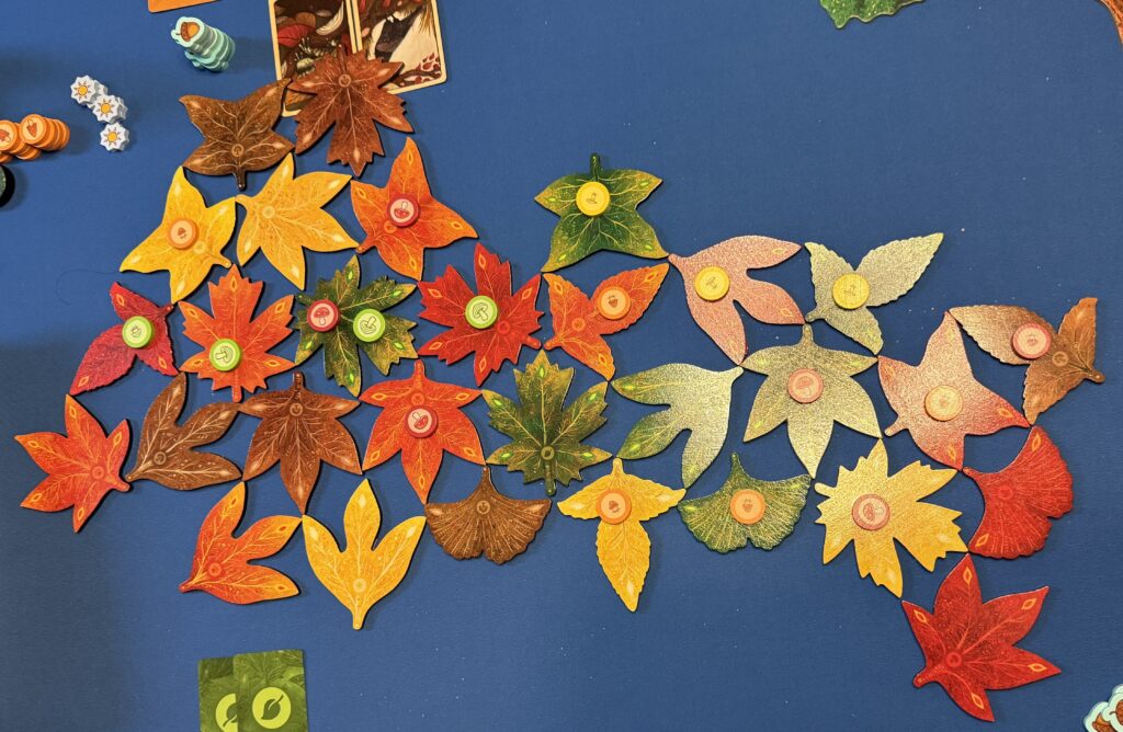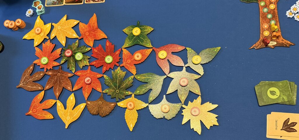 Both of these games were fun. In Leaf, the challenge was to find way to maximize the number of actions you could take given the weird geometry of the leaf shapes. In L’Oaf, there was social deduction involved as we tried balance the need to gain points versus what the others might play in keep higher-point cards in their hand.