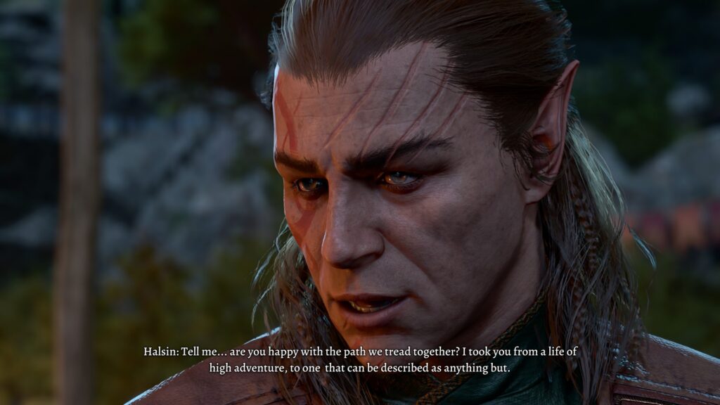 In total, there isn’t much that is different in a monogamous relationship with Halsin. He is still just as eager to start whether it is mono/poly, he still throws just as much of himself into it, and he still gives you the same option at the end of the game as to whether you want to go with him into the life he is planning.