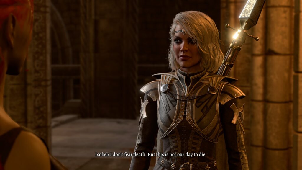 However, I am predicting that in a dual run, the next playthrough will be extremely difficult for the Isobel fight. Isobel is a friendly character we meet in act 2, and it is absolutely vital to keep her alive. The problem is that she pretty much has a suicide wish. Despite me casting Sanctuary (which makes you invulnerable to damage unless you attack first) and literally walling her with a ring of allies, the ditz runs out and tries to attack people.