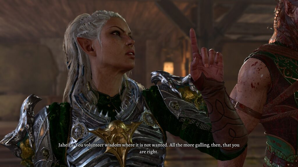 I wanted to use the characters I don’t frequently use, so I kept Shadowheart, Wyll, and Jaheira in the group almost constantly. There were times that I would occasionally switch back to usual favorites like Karlach, and she’d have 4 level-ups she’d have to catch up on. It was weird. That being said, I did get more banter I haven’t seen before, since these characters were rarely out together.