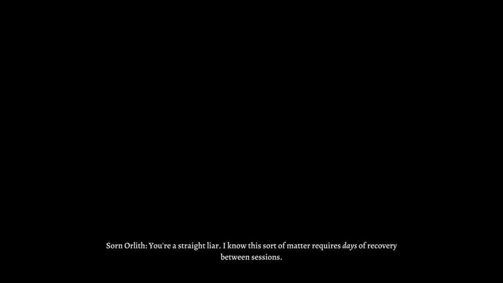 I also found some more in-world party banter that I hadn’t seen before, including this gem (might not be accurate, as my memory is fuzzy from giggling):
