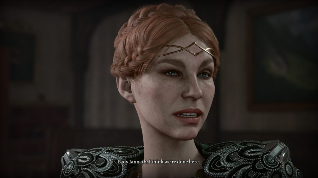 Minthara is definitely an interesting and nuanced character, even though, as Actual Sabrina puts it, she’s “such a pain in the ass.” She also comes from drow society, which we don’t know much (or anything) of in the game without her, so keep in mind that some of her “WTF” moments are normal from where she is from. I did get some of these mutual moments in the romance (such as when she asked me what my experience was in a drow marketplace) but I would have loved to see more. Ultimately, I think part of this is because she shows up as a companion fairly late in the game, and a romance option even later.