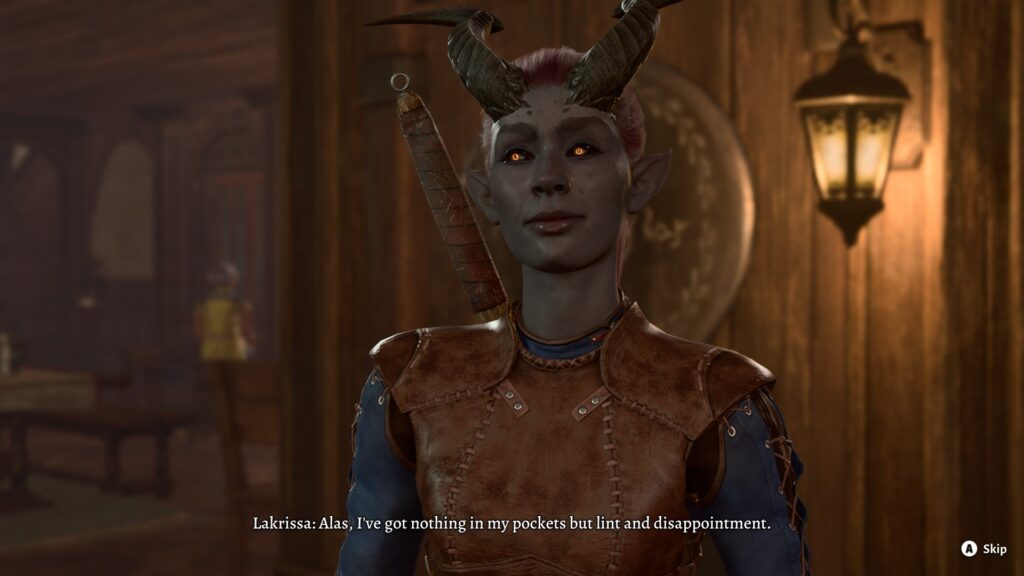 Lae’zel actually showed up dead at two points, which was hilarious. They were both points that would make sense for her to die when not protected/tempered by the main party, but it was funny to imagine her dogged laser-focused personality not even stopping at death the first time.