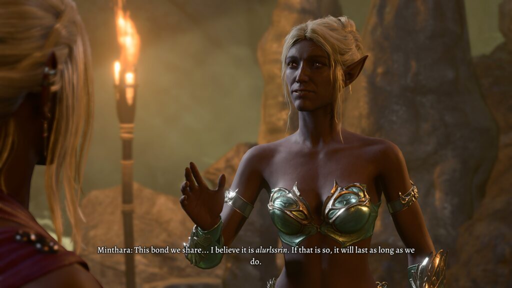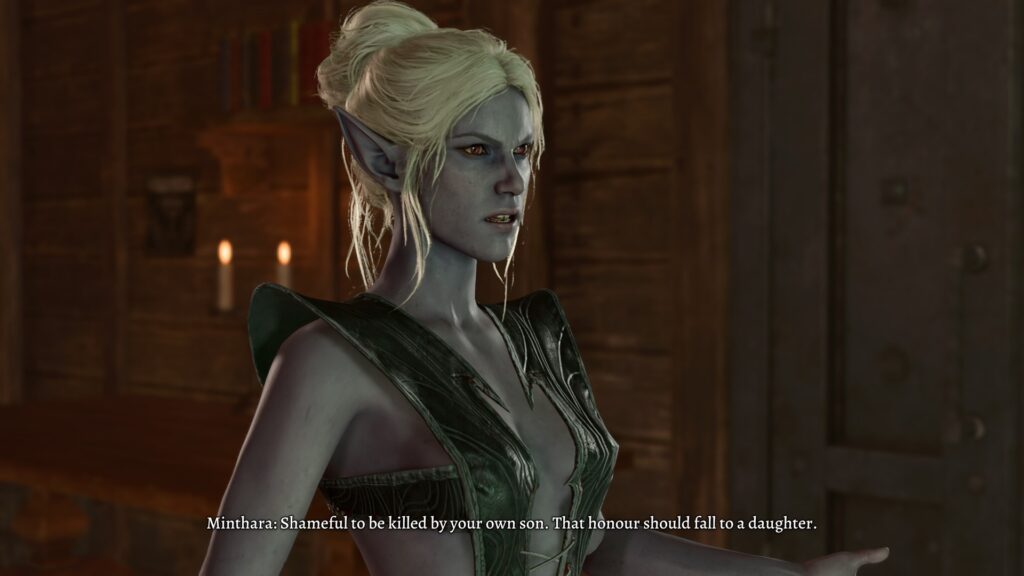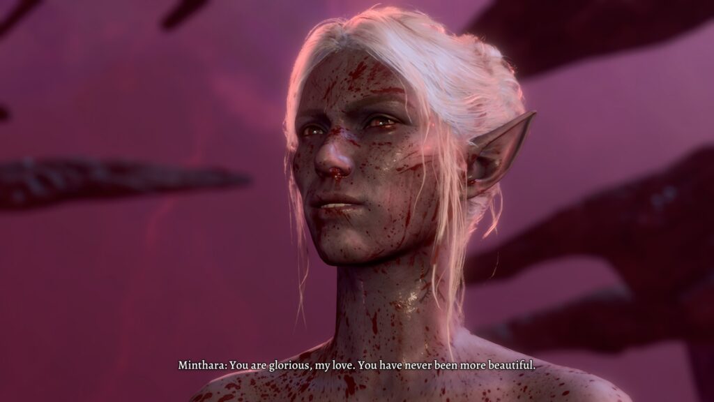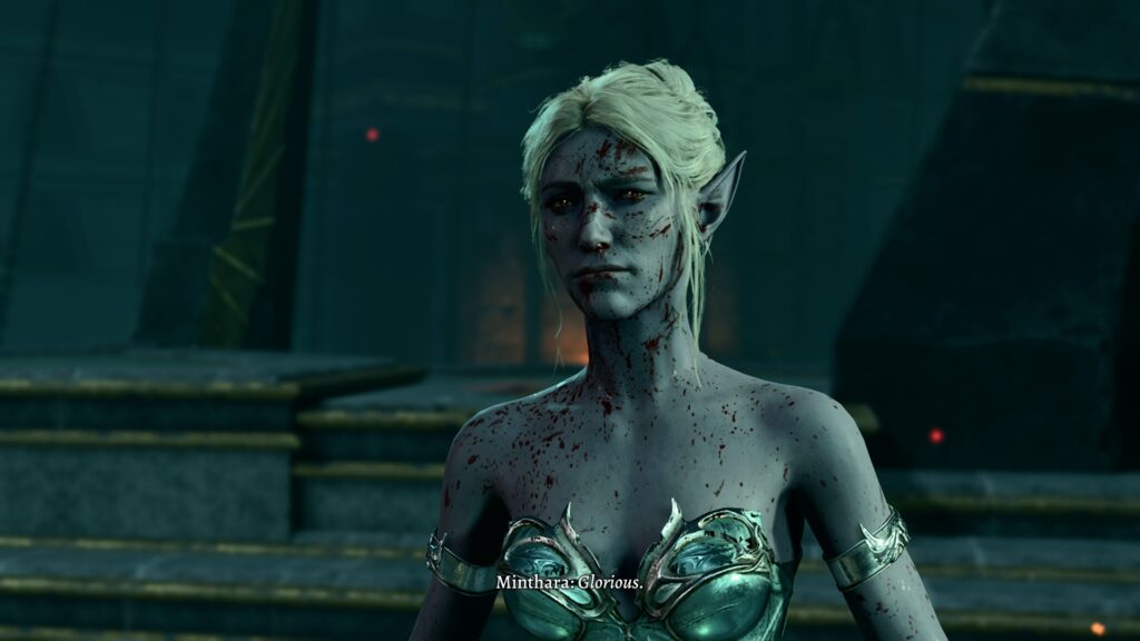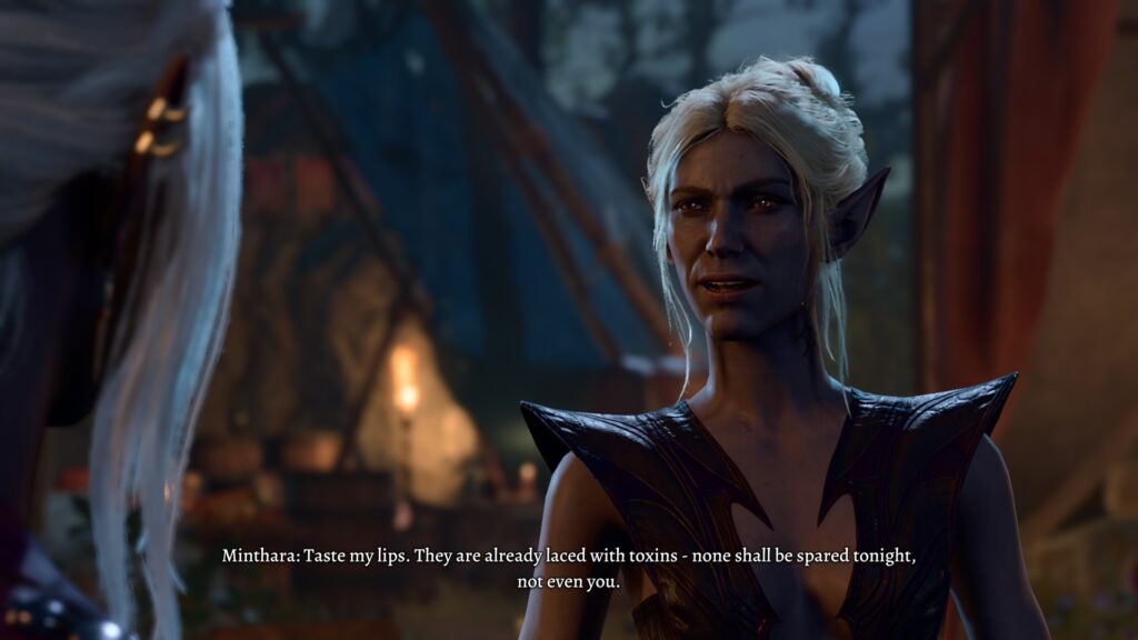 We’ve come across drow before in the game, and they are typically either brutal or sexual, and oftentimes both. Minthara is a great example, for instance. She is a proud member of House Baenre, one of the most powerful houses of Menzoberranzan, the drow capital, and despite the game never bringing us there, she paints quite the picture.