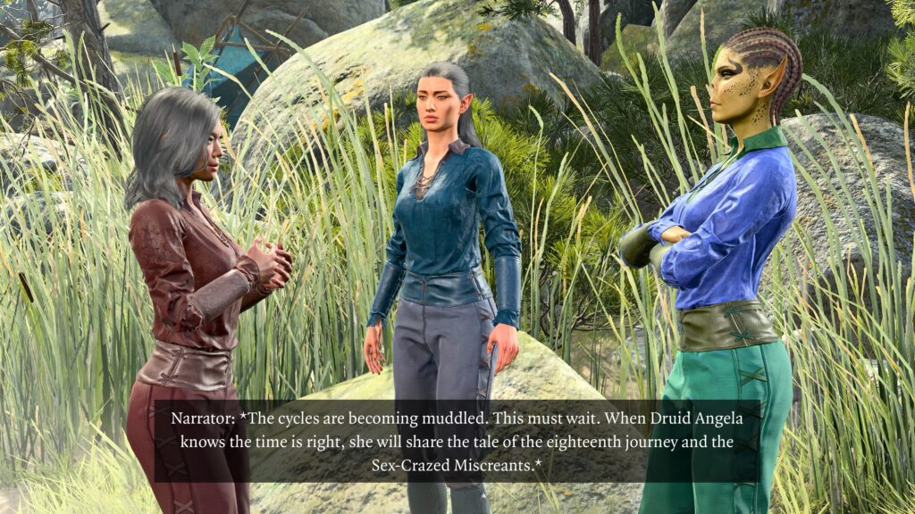 Images with blue lines around them are links. Click on them if you’d like some story background. The last image in a post is a link to the next post in the story. Tags: BG3, Druid Angela, fanfic, video games Read more articles Previous PostBaldur’s Gate 3 – Playthrough 17 – The Chronicler Next PostBaldur’s Gate 3 – Playthrough 17 – The Bed You Might Also Like Hope 17-Dec-2015 Road Trip… again 24-Sep-2008 Baldur’s Gate 3 – Playthrough 11 – Wrapping it up 25-Nov-2024 This Post Has One Comment Pingback: Baldur’s Gate 3 – Playthrough 17 – The Chronicler – The Argothald Journal Leave a Reply Cancel replyCommentEnter your name or username to comment Enter your email address to comment Enter your website URL (optional) Save my name, email, and website in this browser for the next time I comment. Δ Post author:Bill Post published:04-Apr-2026 Post last modified:05-Apr-2026 Post comments:1 Comment