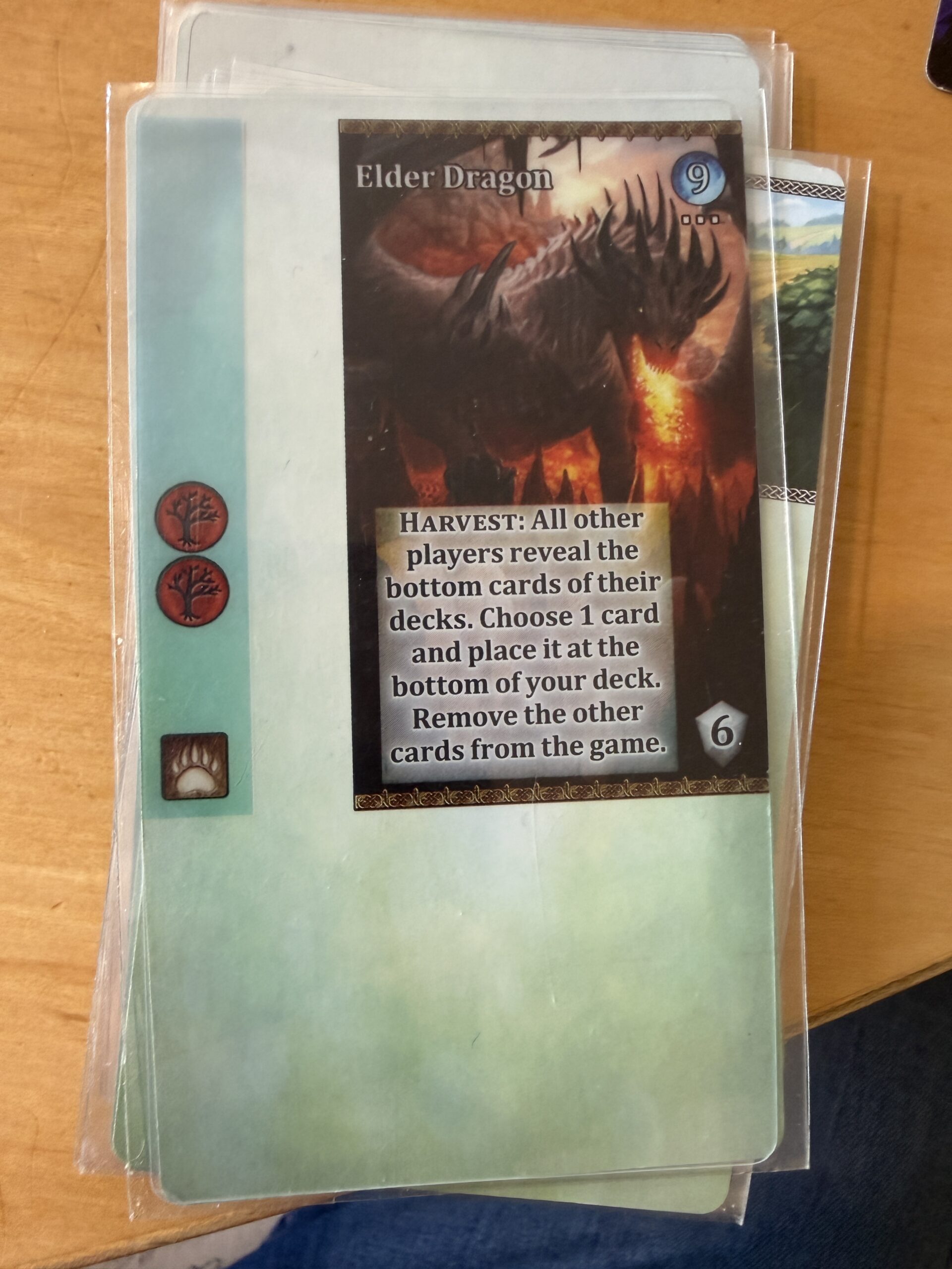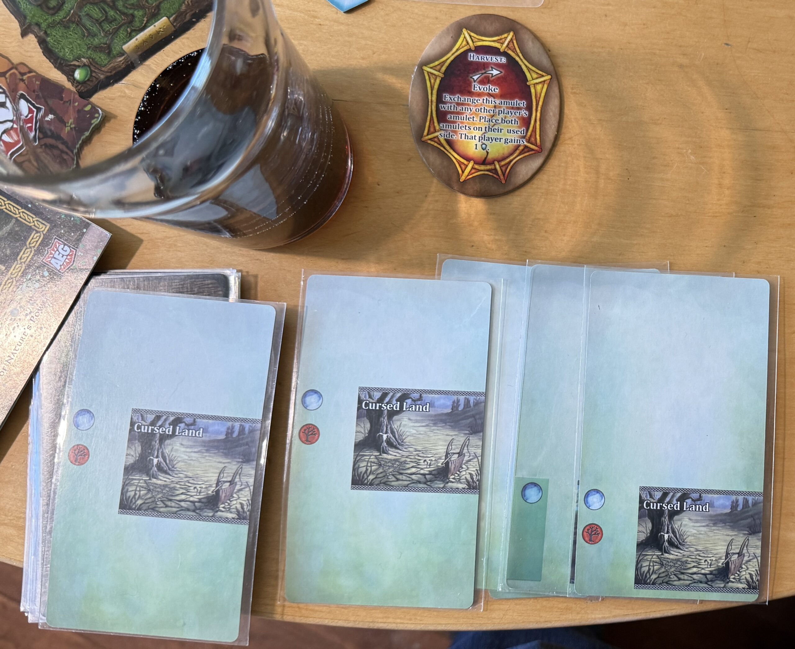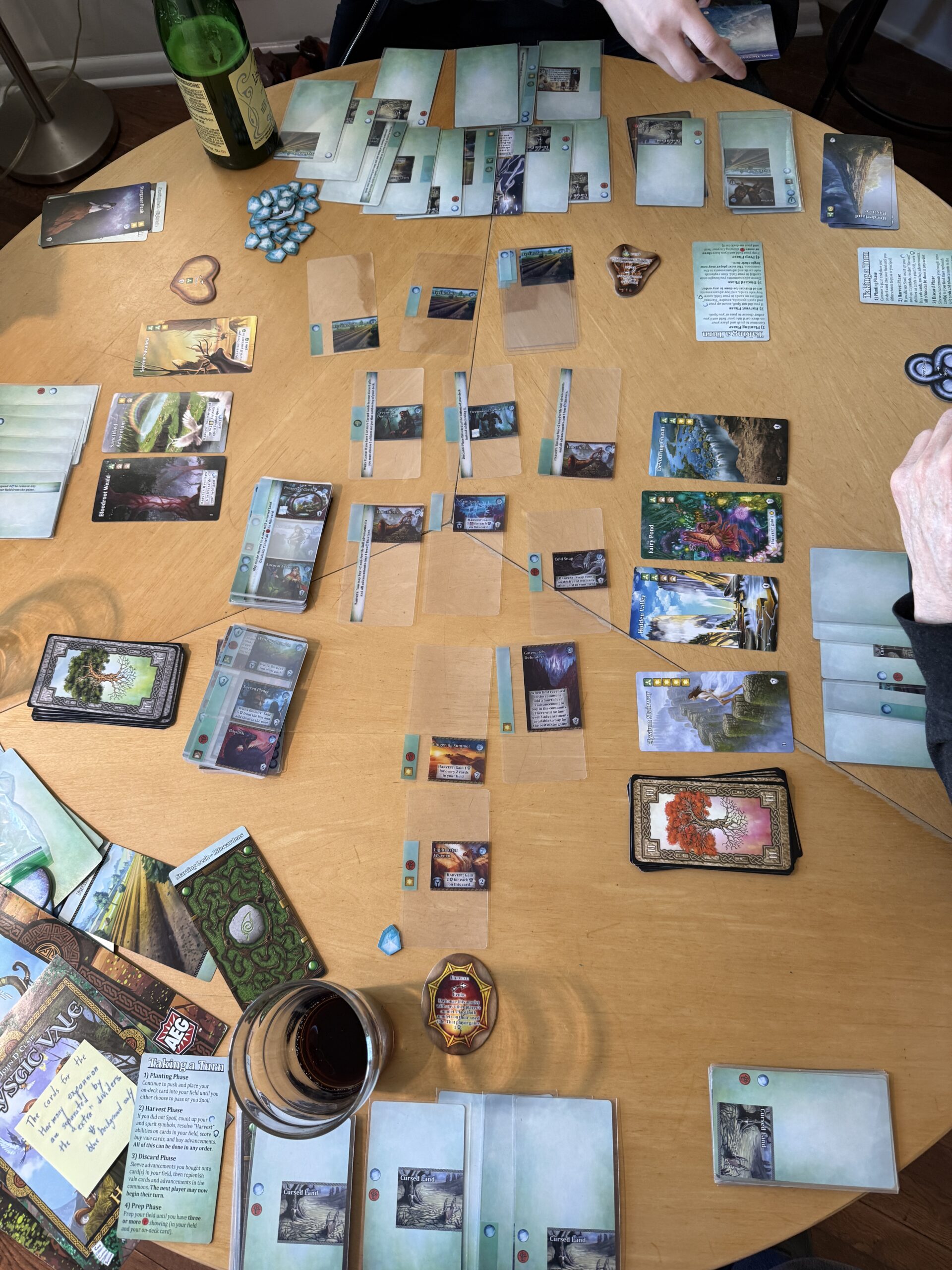 The “Harvest” token you see at the top of the picture is one of the features of the Harmony expansion (the partly-filled glass of diet soda is not included). It replaces a more generic “mana token” from the base game which can be used to compensate you for when you spoil.